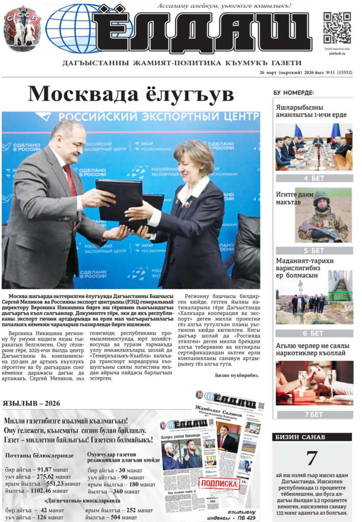 Кумыкская газета «Ёлдаш» №11 от 26 марта 2026 г.