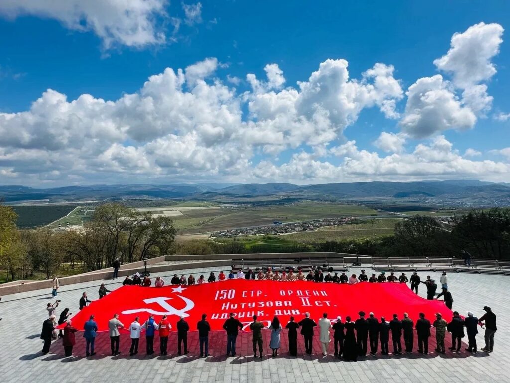 Церемония включала развёртывание большой копии штурмового флага 150-й ордена Кутузова II степени Идрицкой стрелковой дивизии. Здесь же разместили стенды с изделиями дагестанских мастеров. К мемориалу на Сапун-горе участники возложили цветы.
