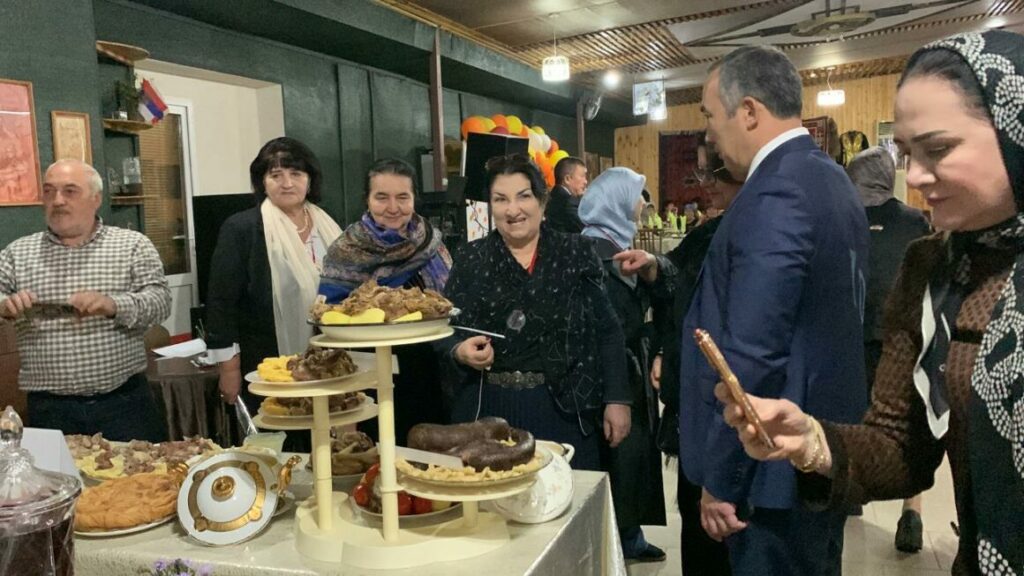Была организована выставка национальной кухни, этновыставка, детского творчества, картин ногайских художниц, выставка «Герои специальной военной операции». Все это было организовано членом Общественной палаты РД, председателем Совета женщин района Асият Манкаевой, она не первый год проводит и организует мероприятия, направленные на поддержку матерей и семей участников СВО, на сохранение памяти о героях-земляках Великой Отечественной войны, на повышение статуса женщины в обществе.