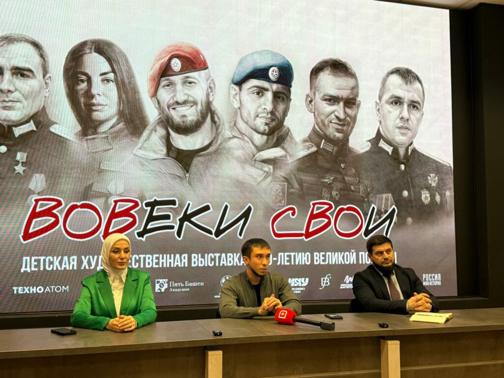 Автор идеи Гамид Алибеков рассказал о концепции выставки. Проект соединяет две героические эпохи — Великую Отечественную войну и СВО. Он показывает, что подвиг защитников Родины вне времени. Формат детского творчества делает тему близкой и понятной для юного поколения.
