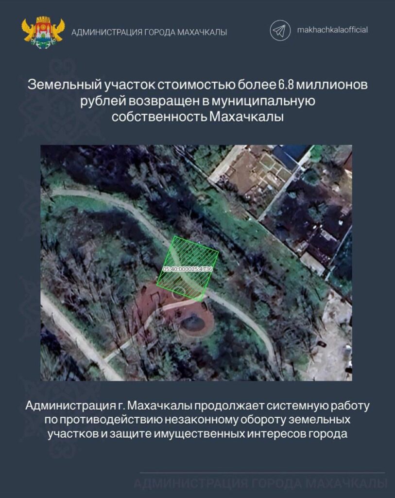 Возвращенный участок имеет площадь 450 квадратных метров. Кадастровая стоимость превышает 6,8 миллиона рублей. Земля расположена в микрорайоне Эльтав под номером 122. Кадастровый номер участка — 05:40:000025:4736.