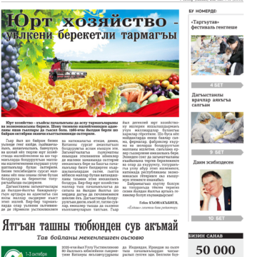 Кумыкская газета «Ёлдаш» №37 от 2 октября 2025 г.